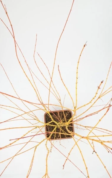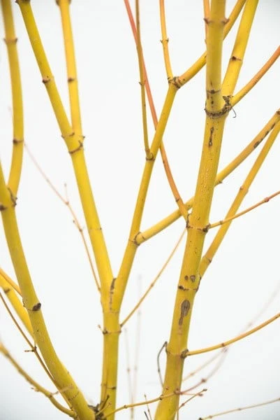 This gorgeous Japanese maple will provide year-round interest. The leaves emerge with a salmon flush in spring before turning yellow-green, then in autumn, they take on rich yellow and orange tones before they fall. Its golden yellow bark, which seems to glow in the winter garden is the feature that stands out long after the leaves are fallen. Relatively compact, ‘Bi Ho’ will make a beautiful stand-alone specimen and can even be grown in a large pot.