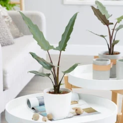 Add a tropical feel to your house with this decorative houseplant. Originating from Southeast Asia it needs warmth and humidity for the striking long spear-shaped, wavy-edged leaves to develop. It has an upright form with strong stems flecked green and purple for added interest.