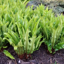 A lovely, evergreen fern that is both eye-catching and versatile. Each spring fresh new tongue-like fronds unfurl, creating upright clumps which look super dotted through a woodland floor. It is also valuable for adding vertical interest towards the front of a partially shaded border or for underplanting established trees and shrubs. Once established, it becomes more tolerant of dry soil.