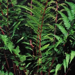 - Garden care: Incorporate lots of well-rotted leaf mould, composted pine needles or garden compost into the planting hole. In cold areas in late autumn protect the crown of the plant with a dry mulch of straw or bracken. It can take a 2-3 years for these ferns to mature and develop the striking red stems.