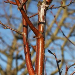 One of the very best birch trees for stem colour. Peeling, papery cream bark with beautiful variations of orange, brown and pink, ‘Fascination’ is the most gorgeous winter interest tree. Although glorious with its dark-green leaves appearing alongside brown-yellow catkins in spring, it’s seasonality of display extends over many months of the year.
