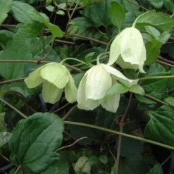 Small, creamy, bell-shaped winter flowers, often tinged with green, and mid-green leaves retained throughout the year. This winter-flowering clematis is perfect for training over a pergola, doorway or arch, in a sunny, sheltered site. Although drought-tolerant it may not survive severe winters.