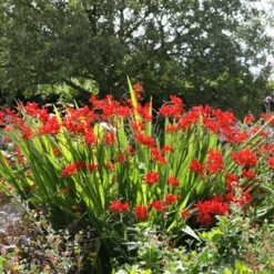 Arching sprays of bold, tomato-red, funnel-shaped flowers appear in August and September among handsome, pleated, mid-green leaves. This vibrant bulbous perennial is perfect for a mixed or herbaceous border in a sunny, sheltered site or as part of a ‘hot’ colour scheme. For maximum impact plant in bold drifts in a sunny, sheltered site with moderately fertile, humus-rich, well-drained soil. They make excellent cut flowers.