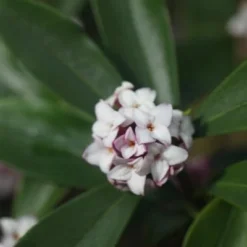 Lustrous, deep green leaves provide a handsome silhouette throughout the year, but it is for the small clusters of highly scented flowers that this rounded, evergreen shrub is most highly prized. Appearing in mid-winter, they open from purple-pink buds to reveal their pale pink petals, which usually have a richer pink reverse. Plant it somewhere that you pass by regularly to make sure you can enjoy their delicious scent.