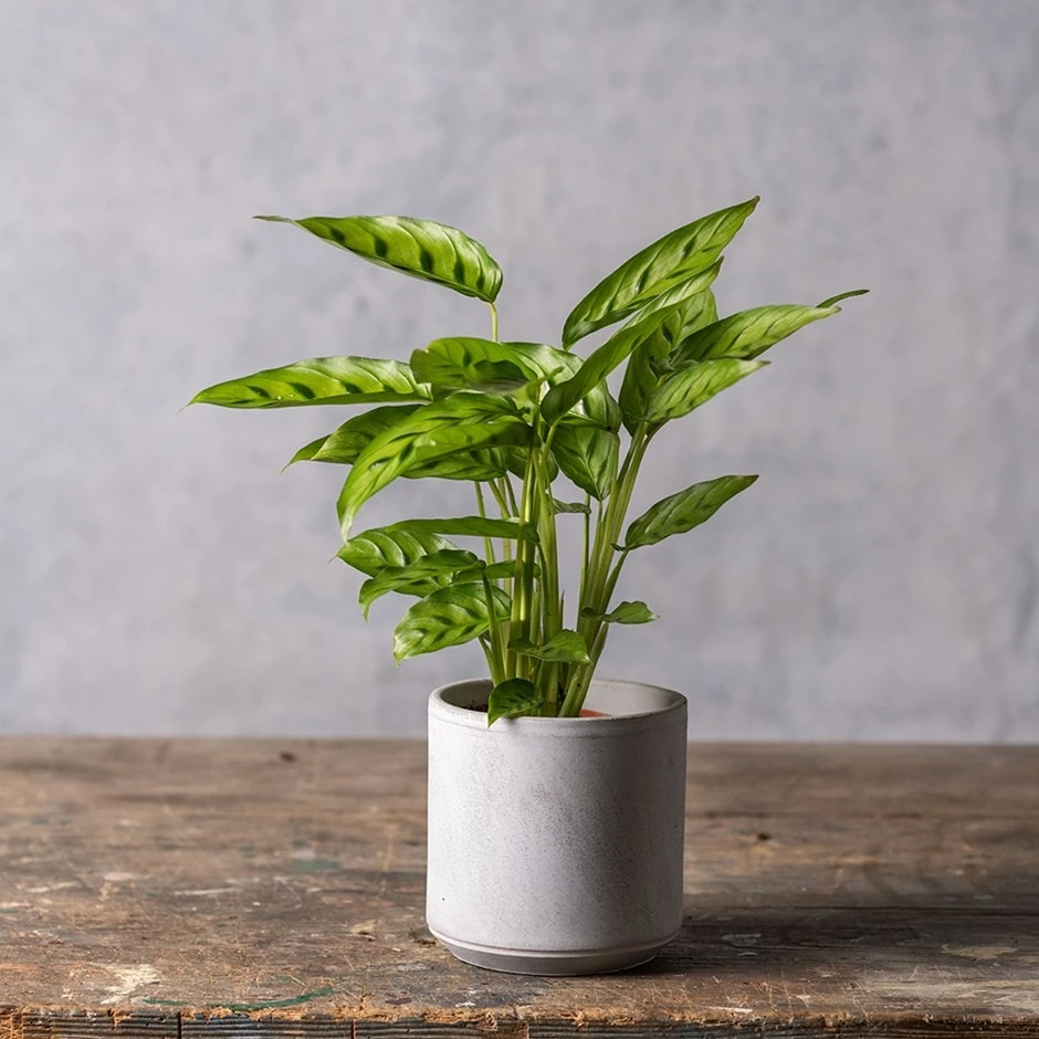 We love this plant! Bright green leaves decorated with deeper green patterned markings, reminiscent of an animal print, stand out from the plant on strong upright stems creating a well-shaped pretty plant. Choose your spot carefully and this gorgeous foliage plant will steal your heart!