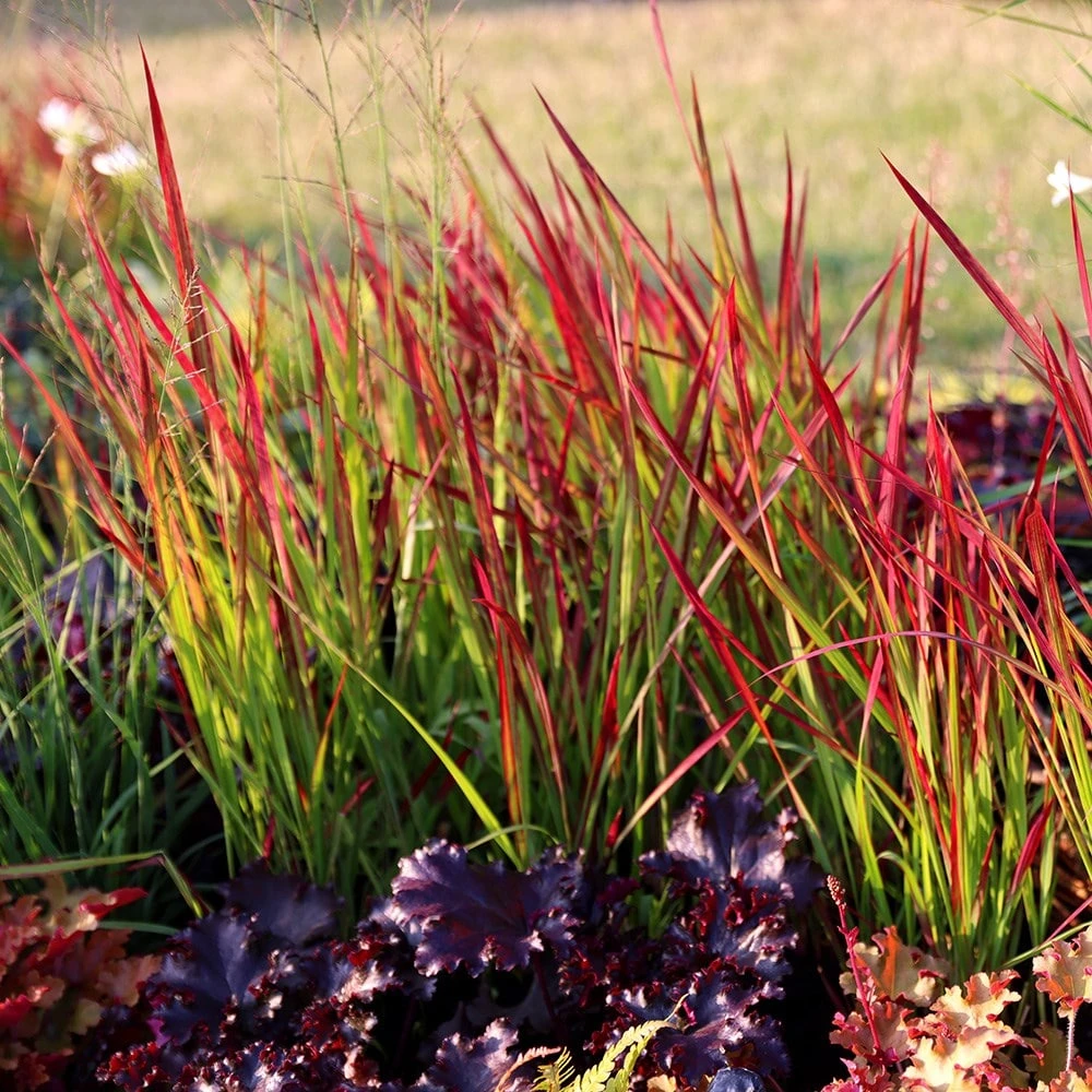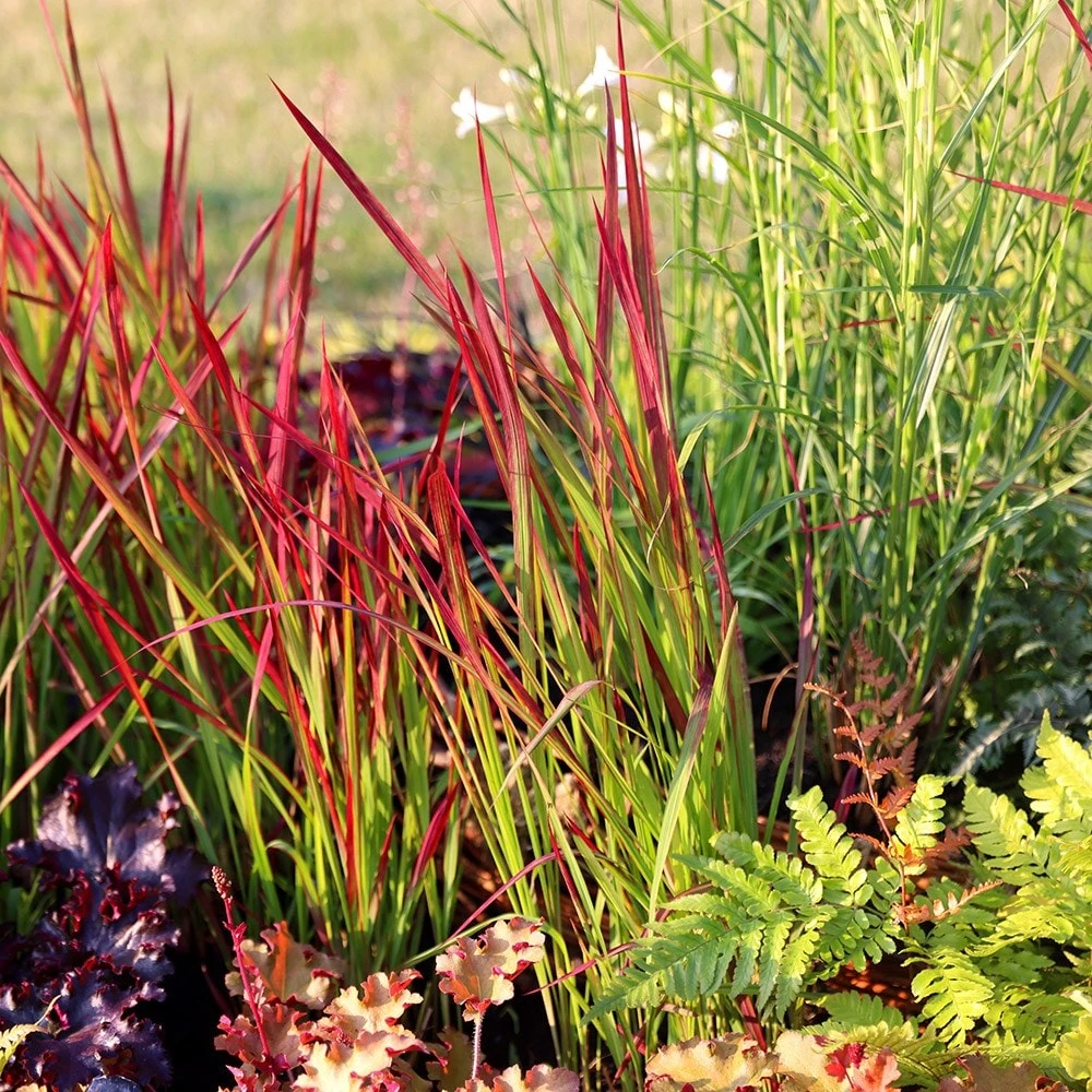 Blood-red spikes that fade to bright green at the base and become transluscent with age make this grass a spectacular addition to the perennial border. It takes a while to strut its stuff, but in late summer, it shines like a jewel before it dies back. Imperata cylindrica is particularly effective planted with other grasses, or shown off in a container.