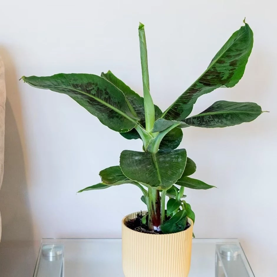 Don’t be fooled by the word ‘dwarf’ – because this banana is a fast grower in the right conditions! As an indoor plant its eventual size will be restricted to about three metres, but it will still need quite a bit of room to grow and spread out its gorgeous, rich green leaves. Given space and the right conditions however, ‘Dwarf Cavendish’ will make a great statement in a well lit part of your home or office.