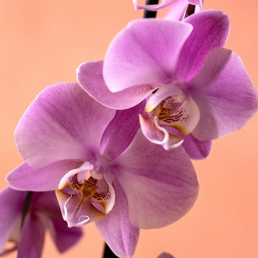 Don’t worry if the roots grow outside the pot. In their native environment, they grow in the crooks of branches, and use these aerial roots to absorb water from the air. They do not mind being overcrowded in their pots, so you only need to repot them when the growth starts to suffer. They usually only send up flower spikes once a year, however you may encourage a second flush of flowers to form more quickly if you trim back the stem to just above the first node immediately after they have finished flowering. They prefer even temperatures, so try not to have big drops at night time.