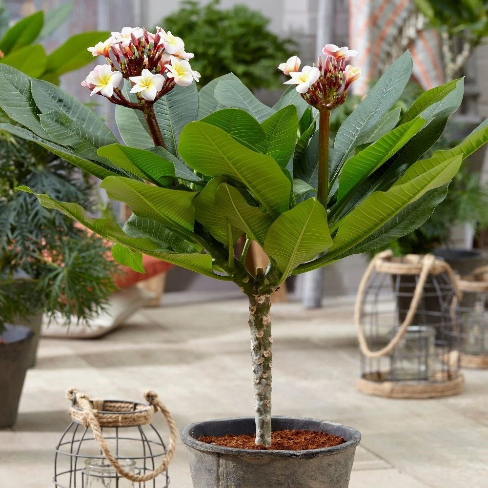 This much-loved deciduous shrub is a common sight in warmer countries, but here in the UK, it is possible to grow it as house plants in bright cool rooms or unheated conservatories. The thick fleshy branches create a distinctive silhouette – even when they have shed their large green leaves in the winter. It’s for the scented pink or yellow-tinted flowers however that this plant is so sought after. When grown in ideal conditions, these appear in clusters near the tips of the stems, filling your room with their sweet perfume. Plants may not be sent out in flower. Stems may have natural brown markings as they mature.