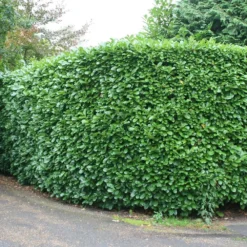 Dense, bushy, evergreen shrub with large glossy, dark green leaves. It makes an excellent hedging plant, and can cope with deep shade under trees as well as full sun. Small white flowers are produced on spikes in mid-spring, followed by cherry red berries which are harmful if eaten.