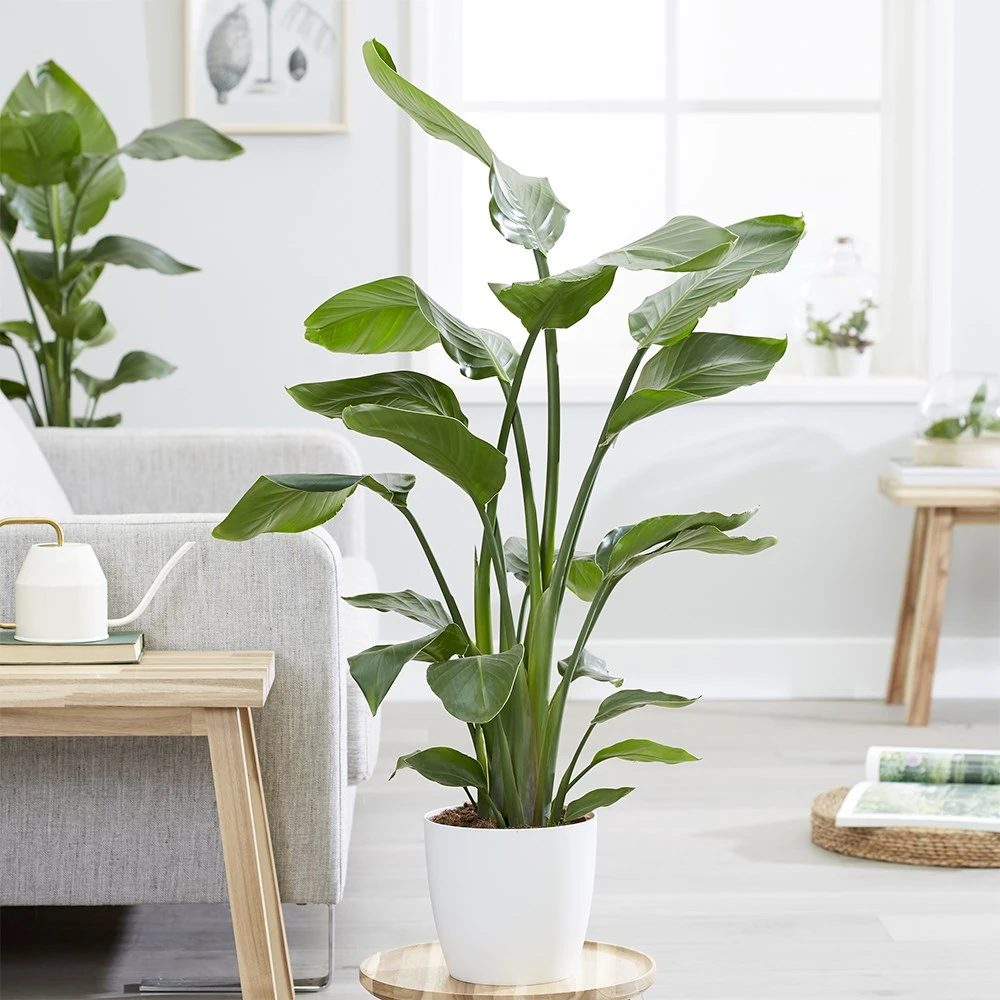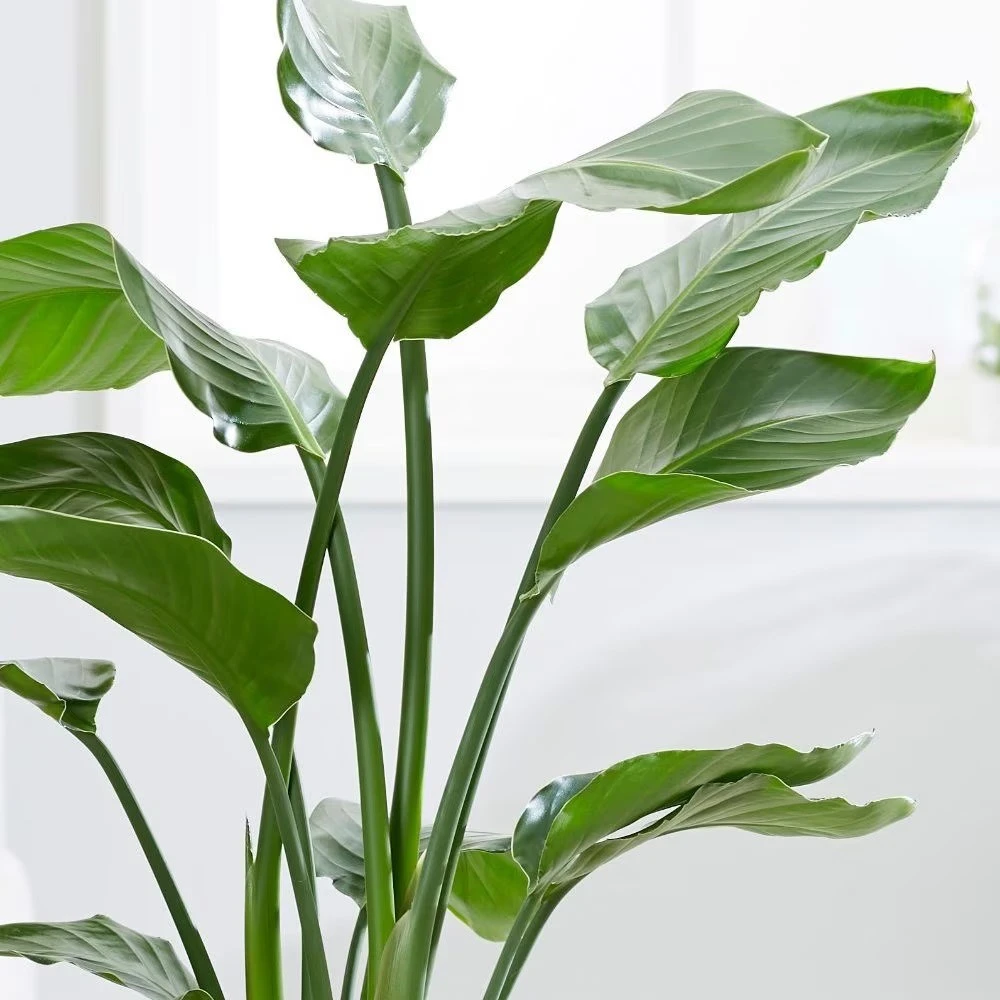This structural evergreen is primarily grown for its handsome (banana-like) foliage, which becomes shredded as it ages. Given time and the right conditions however, it may occasionally produce a blue and white flowerhead too! In its native environment, this plant can grow to a great height (the foliage alone nearing 4m), but when confined to a pot and kept as an indoor plant, it will be a much more modest, but no less decorative specimen.