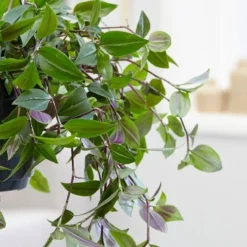 A tender, trailing, evergreen perennial with branching, purple-flushed stems and fleshy, dark green leaves, dark purple beneath. Tiny white flowers are produced in clusters intermittently throughout the year. ‘Green Hill’ is a popular, easy-to-care-for indoor hanging basket plant for a brightly lit room or shaded conservatory – simply pinch out the tips of the trailing stems and it will get even bushier as it grows.