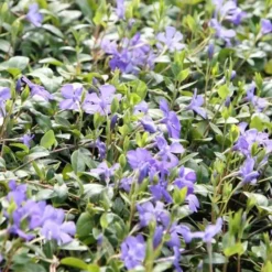 Lovely, lavender-blue flowers over a long period from April to September and dark green leaves. The long, trailing stems of this prostrate, evergreen shrub are excellent for suppressing weeds in sun or partial shade. Allegedly the best blue-flowered variety and less invasive than Vinca major, it’s particularly suitable for smaller gardens.